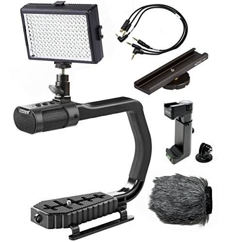 No bulky set ups, no loose connectors, and best of all, its affordable. The MicRig is your professional, universal solution for capturing the best possible action shots.The Movo Exclusive MicRig Bundle with Universal Grip Handle, Stereo Microphone, 160 LED Light, Shoe Extender Bracket and More!