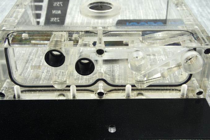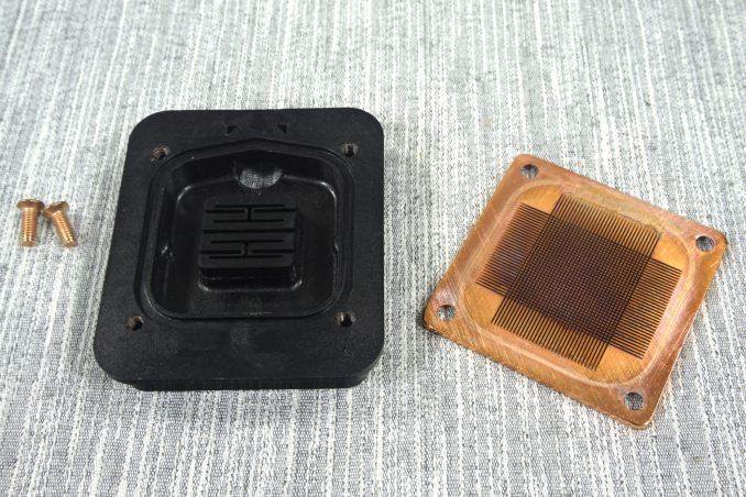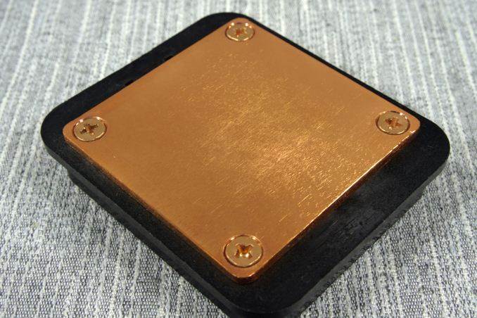 The base of the NexXxoS XP3 Light is obviously copper. It is well-machined and smooth enough, but Alphacool did not bother polishing it down to a mirror finish. The company likely expects that the experts who would buy such a kit already know that a perfect mirror finish would not actually benefit performance by a measurable amount. Alphacool is also using copper screws in order to prevent chemical oxidation.