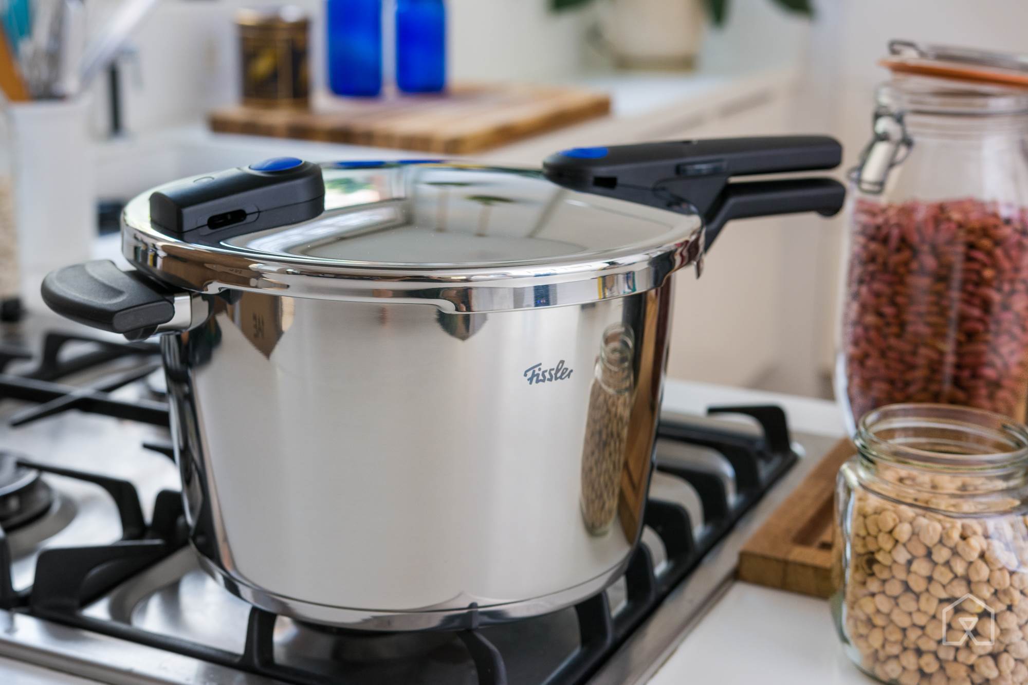 The Fissler Vitaquick 8.5-Quart Pressure Cooker has a nicer lid and a wider tri-ply base than our main stovetop pick, but it’s also nearly $70 more. Photo: Michael Hession