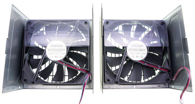 As expected, considering the large difference in power that the two PSUs have, their first major difference is the 135 mm cooling fan. Both fans are supplied by Martech, a rarely-seen Chinese manufacturer, and both are of the same series. The 450W version comes with the DF1352512SEMN and the 850W version employs the DF1352512SEHN, with the main difference being their maximum rotational speed – 1500 RPM and 1800 RPM respectively. Both are using “Hydro” bearing engines, which are advanced forms of regular sleeve bearings.