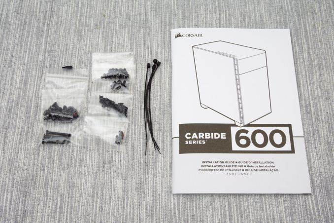 The company kept the main bundle of the case down to the basics. Only the necessary black mounting hardware, a manual and a few short cable ties are supplied alongside with the 600Q.