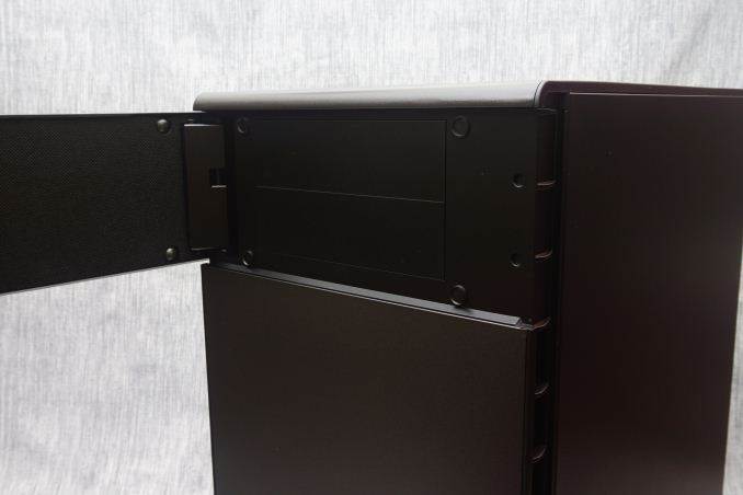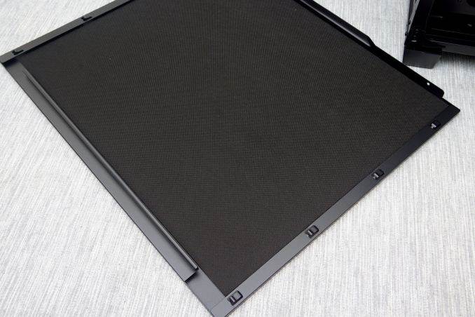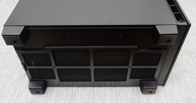 The bottom of the case serves as its main air intake, requiring substantial clearance via four tall rectangular legs. A large nylon filters covers the entire intake, which can be removed by pulling it from the rear of the case. Considering the length of the filter, I worry that it will be a pain to remove with the case beneath a desk, or even on a desk if the desk sits against a wall. It would have been far more practical if the designer allowed the user to pull the filter off from the front of the case.