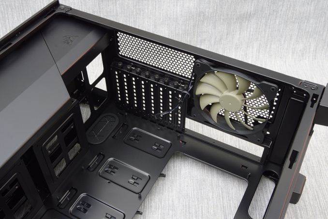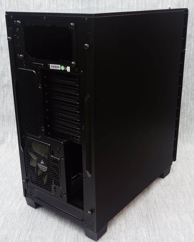 One look at the rear of the Carbide 600Q hints that the interior of the case will definitely be unusual. The motherboard’s I/O is located towards the bottom of the case and is facing the right panel. The exhaust cooling fan is located near the bottom of the case too, while the PSU compartment can be seen at the top. In short, the rear of the Carbide 600Q looks as if someone took a modern ATX case design and rolled it upside down.