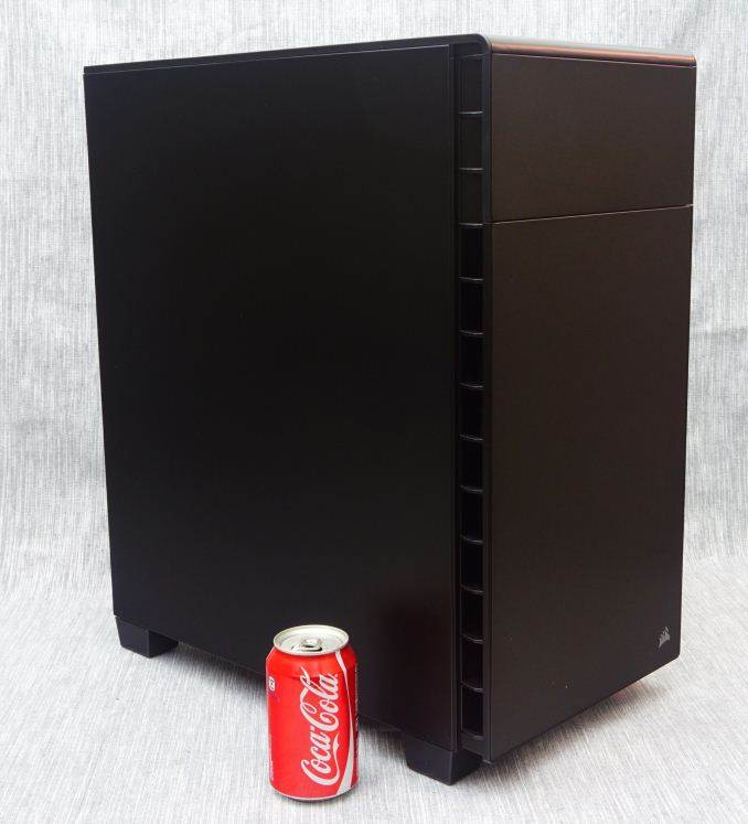 Measuring 53.5 cm tall, 23.5 cm wide and 45.4 cm deep (21 × 9.25 × 17.9 in), its dimensions are similar to those of other high end ATX cases with 5.25” bays, except from its significantly shorter depth. The design of the Carbide 600Q brings the 5.25” devices away from the main system, allowing the design to be just as small as cases without 5.25” device support at all. It has a volume of 57.1 liters, which is almost the same as that of the BitFenix Pandora ATX, a case without any 5.25” drive cages, and only 15% greater than that of the Zalman Z9 Neo, a significantly narrower low-cost design. However, the Carbide 600Q weighs 10.2 kg when completely empty, which is rather heavy for a case of this size.