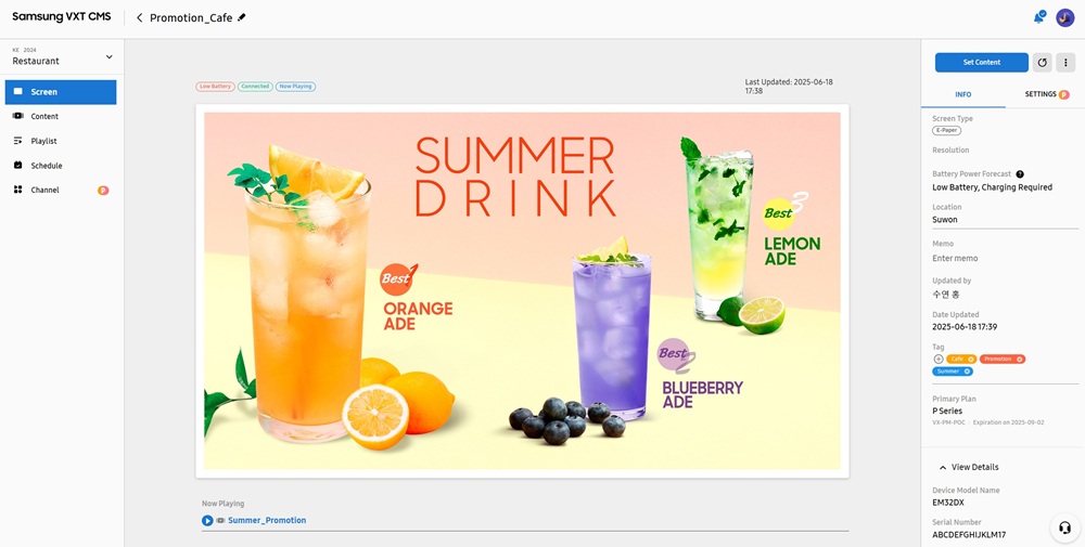 ▲ Content for the Color E-Paper might be simply created, changed and managed by means of the Samsung VXT platform.