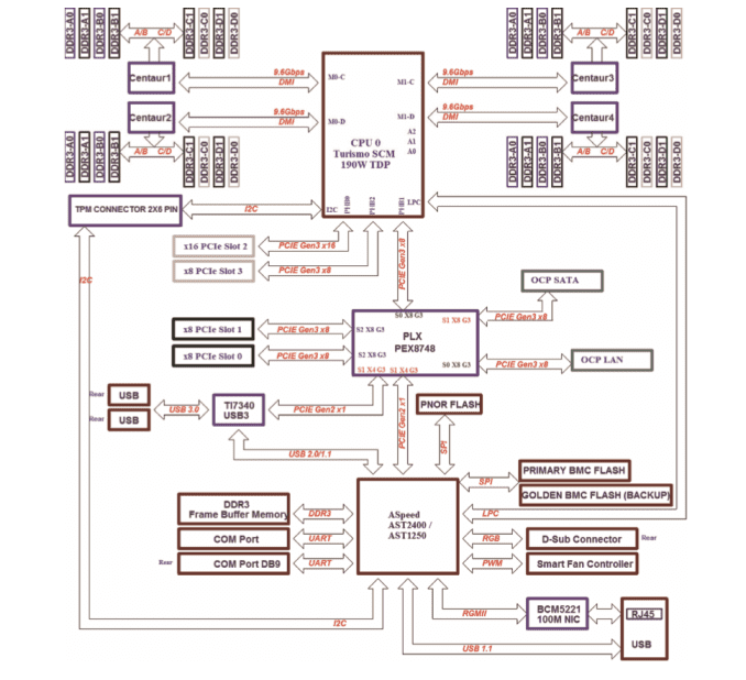 The Tyan GT75 machines (just like the Tyan TN71-BP012 servers launched a year ago) are based on one IBM POWER8 Turismo Single Chip Module (SCM) processor, offering either eight or ten cores. This CPU finds itself paired with Tyan’s Habanero motherboard, the same as in IBM’s most affordable OpenPOWER server, the S812LC.