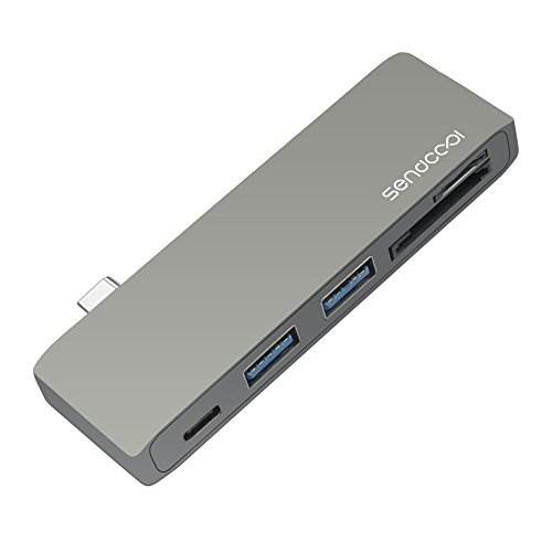 Compact The small size makes the Type-C Pass Through USB Hub easy to fit into a purse, backpack, or laptop bag. No matter where your travels take you, you won’t be far from the convenience of accessing your favorite USB devices! Plug and play The USB-C connector does not require any software, drivers, or complicated installation process. And it is completely reversible, so you’ll never have to worry about plugging it in incorrectly. High Transfer Rate Sendcool Hub can supports high speed transfer rates of up to 5 Gbps with 3.0 USB version, 1 second synchronous transmission of 100 songs, 3 seconds to synchronize the transmission of two films. Specifications Material: Aluminum alloy Product Dimension: about 85*30*10mm Product Weight: about 20g Supported memory card models: SD, SDHC, SDXC, Micro SD, MMC, etc (support maximum capacity up to 2 TB) Operating Voltage: 5V Working Current: 150-180 mA Smart Charge Voltage/Current: 14.5V/2A【5 in 1 Type-C Hub】Expand your Type-C port, Features two USB 3.0 ports, a SD and Micro SD card slot, and a charging port.It can support all the ports what you need on your MacBook Air or MacBook Pro and more.