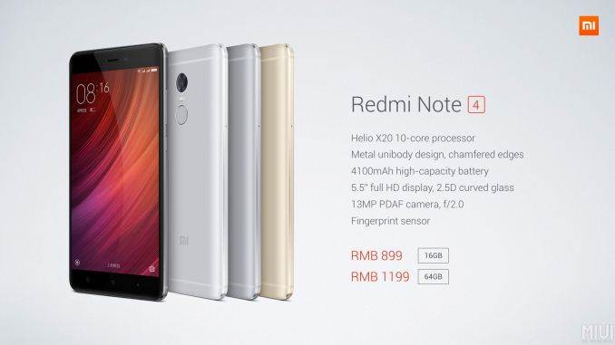 Overall, the Redmi Note 4 from a distance looks to be a fairly impressive phone. It wasn’t all that long ago that things like aluminum unibody design, fast-focusing rear cameras, high quality, high density displays, and fingerprint scanners were impossible to find in a single package for a phone under 200 USD, and Xiaomi has managed to ship a phone with all of these things. It’ll be interesting to see how they manage the transition for the Redmi Note 4 to a global audience, which would likely mean a Qualcomm SoC and new RF front-end, but it’ll be interesting to see all the same. The Xiaomi Redmi Note 4 will be available in China in silver, gold, and gray, and the 2/16GB variant will retail for 899 RMB or 135 USD, and the 3/64GB variant for 1199 RMB or 180 USD.