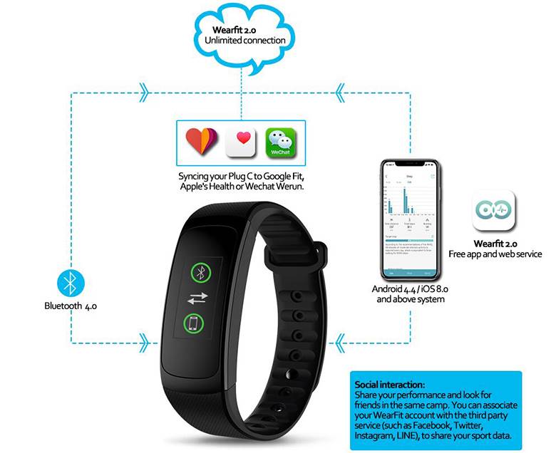 This is an excellent way to monitor your sleeping. When you sleep with this smartband on your wrist, it will track your sleeping time and record data into the Waerfit 2.0 app. It can even serve you as an excellent assistant. Set alarms and the smartband will wake you up by silent vibration making the awakening process more pleasant. But what we like more is the Sleep Stages. With heart rate monitoring function, the Plug C can show the time for light sleep, deep sleep, and rapid-eye-movement sleep. Thus you can always learn about your sleep quality.